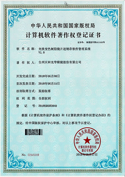 | 2 | 2018/8/27 | 光致變色樹脂国产精品无码午夜免费麻豆進銷存軟件管理係統 | 2018SR682840 | 10100-0000 | V1.0 |